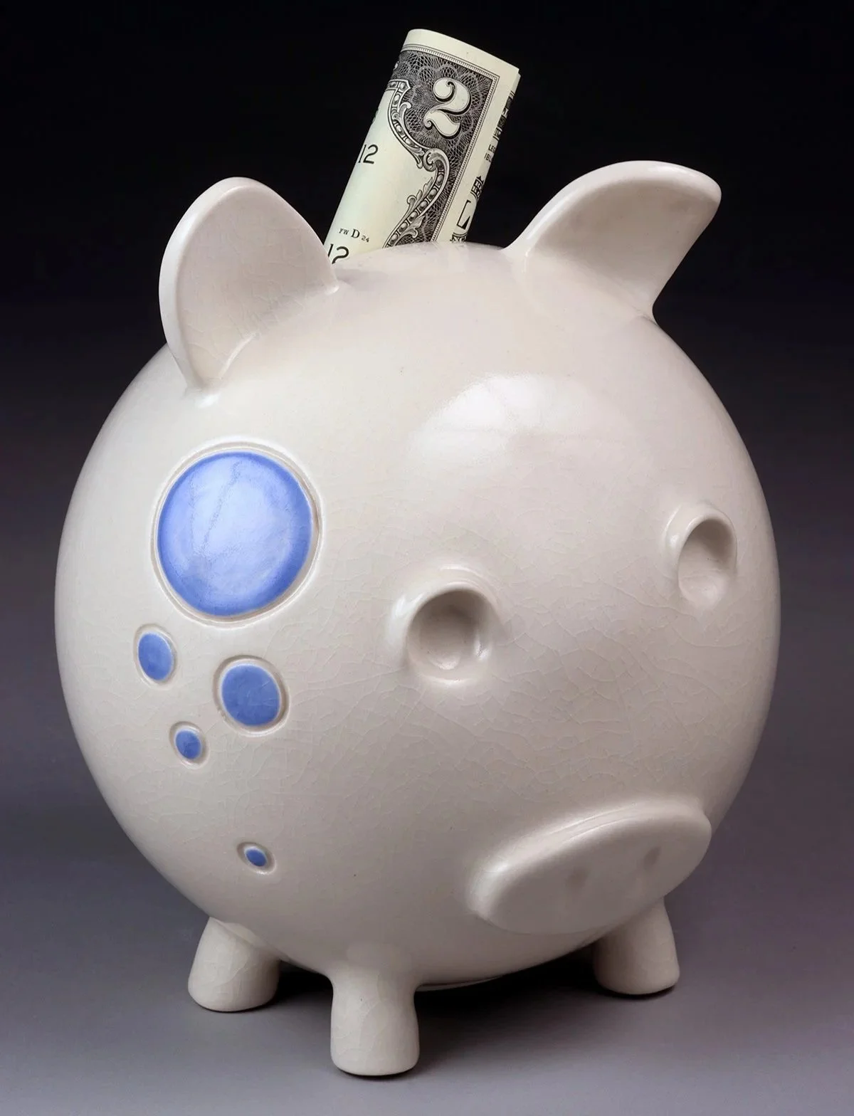Handmade piggy banks are a keepsake gift for little ones. Each bank is glazed in white with your choice of pink or blue spots and personalized with the recipient’s initials. Perfect for baby showers, new arrivals, or first birthdays.